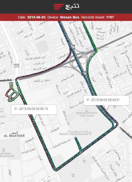 خدمة تتبع من شركة العلوم هي الوحيدة في المنطقة التي تقدم حفظ كامل ارشيف وتاريخ الاسطول بدون حدود وطوال فترة الاشتراك. Tataba services and solutions from alolom.com is the only one in the region to offer limitless fleet history and archive at any point in time