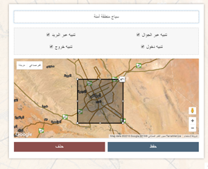 تمكن هذه الخدمة العميل من تحديد المناطق المسموح للمركبة التواجد فيها ورصد حالات تجاوز هذه المناطق وابلاغ العميل بذلك فور تجاوز المركبة الحدود المسموحه لها. تحد هذه الخدمة من تلاعب السائقين بمركبات العميل واستخدامها لأغراض شخصيه ودون علم العميل.